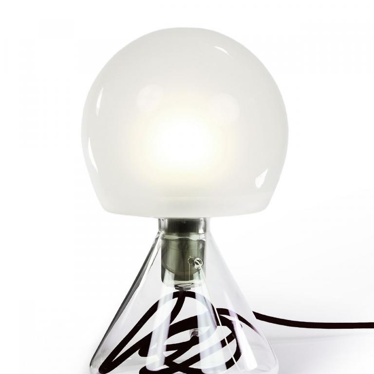 eine lampe im stil der Klassischen Moderne, mundgeblasen aus besonders klarem borosilikatglas für moderne leuchtmittel wie led, überschüssiges kabel kann in den standfuß geschoben werden, ca. 32 x 18 cm