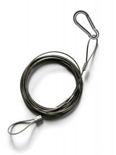 ein circa 1,5 m langes Edelstahlseil mit Karabinerhaken zum Aufhängen