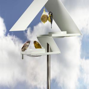 Passend zu unseren weißen Vogelhäusern gibt es nun auch unser in Edelstahl gefertigtes Vogelfutterhaus mit einer weißen Pulverbeschichtung.