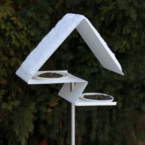 Unser Vogelimbiss hier mit einer zusätzlichen, weißen Pulverbeschichtung (extrem haltbar). Hier zum Sonderpreis. In der Spitze seitlich minimal beschädigt und nachlackiert.