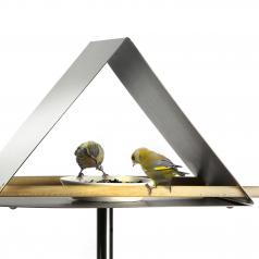 Unser VH-14 Edelstahlvogelhaus ist eine Neuauflage eines unserer ersten Designs, mit kleinen Detailänderungen. Dieses Vogelhaus in Nur-Dach-Form hat eine Grundfläche von 29 x 21 cm und wirkt trotz der seitlich geschlossenen Bauweise filigran. Zwei Buchenholzstege dienen als Landehilfe für die Vögel und schaffen eine Begrenzung nach vorn und hinten. Die enthaltene Porzellanschale kann sowohl für Vogelfutter (wie Sonnenblumenkerne) als auch als Tränke genutzt werden.