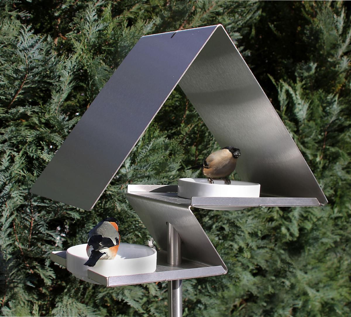 Manche assoziieren mit diesem Vogelimbiss zwar eher die Silhouette eines Hauses. (Passt aber letztendlich auch zum Thema: vogelHAUS...)