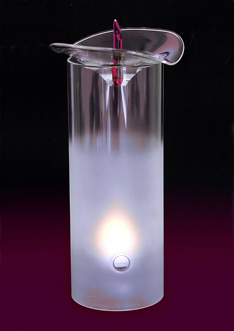 duftleuchte mit einem schönen, matten lichtschein. der fruchtstempel der interpretierten blütenform ist aus rotem glas gefertigt in beindruckender größe von ca. 28 cm höhe