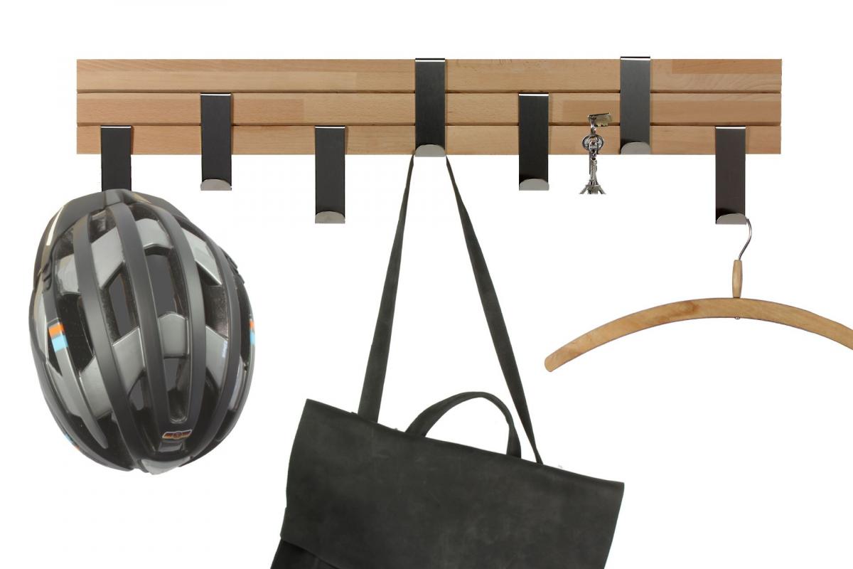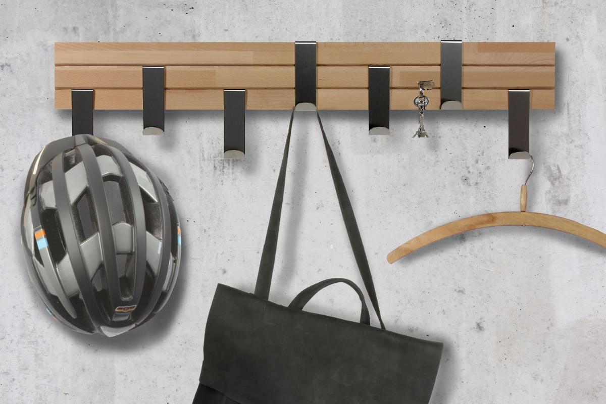 Die längere Variante unserer Wandgarderobe mit 7 verstellbaren Edelstahlhaken.