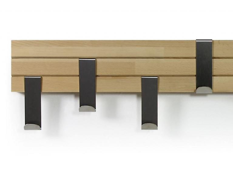 wandgarderobe mit geschlitztem buchenholz-element und verstellbaren edelstahlhaken ca 95 x 13 x 7 cm