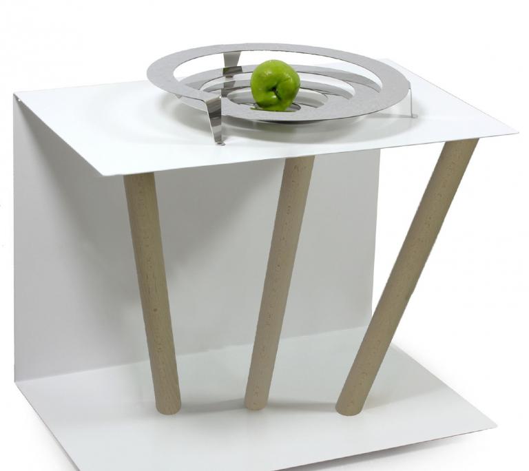 beistelltisch aus fein weiß pulverbeschichtetem metall, bambusrohr oder buchenholz, maße ca.40 x 60 x 45 cm