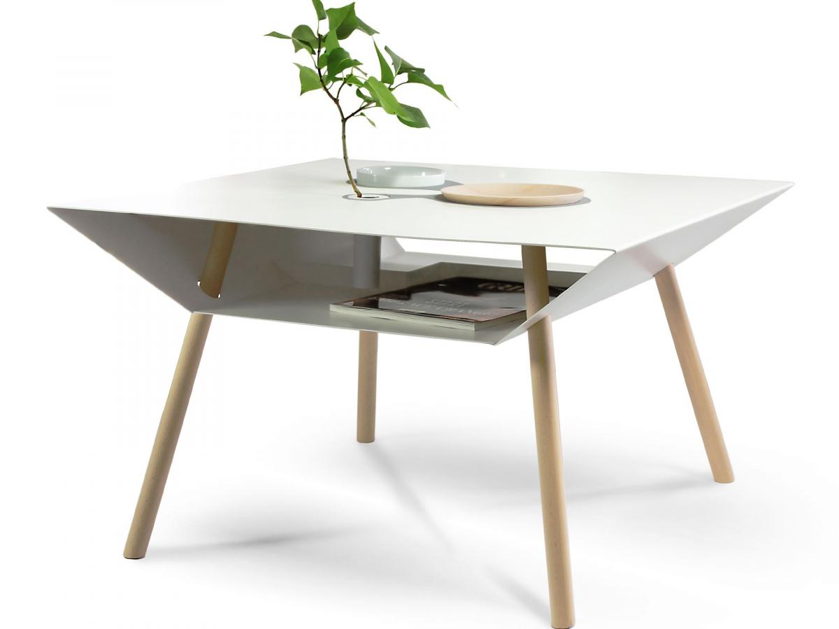 Erhältlich ist der Metalltisch in einem zeitlosen Design mit einer weißen Pulverbeschichtung, mit Füßen und einer Holzschale jeweils in Buche oder Eiche. Die integrierte Vase und das Porzellangefäß gehören ebenso zum Lieferumfang wie eine Abdeckung für letzteres.