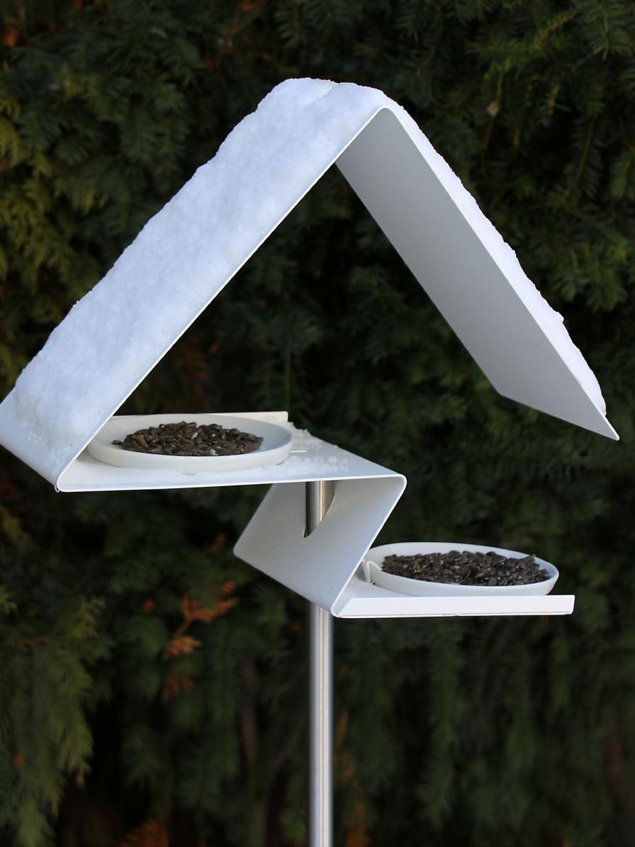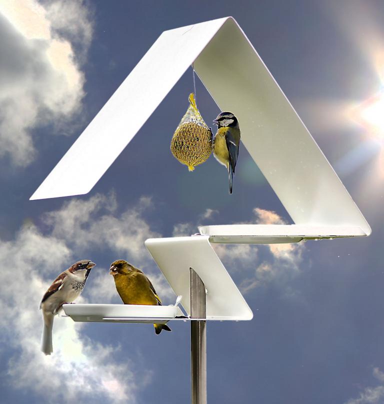 Im Gegensatz zu althergebrachten Futterstellen aus Holz sind wir auch hier unserer unverwüstlichen Materialauswahl treu geblieben. Es ist absolut langlebig, verrottet nicht wie ein übliches Holzvogelhaus.
