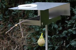 Geradliniges Design und klare Linien prägen dieses Vogelfutterhaus.