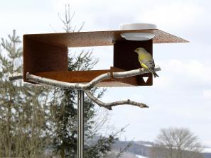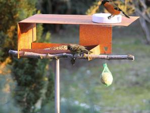 Für alle, denen der Kontrast zwischen Weiß bzw. Edelstahl zur Natur bei unserem Vogelfutterhauses VHT-1-Large zu groß ist, ist diese kombinierte Vogeltränke-Vogelfutterstelle VHT-1-Large in Edelrost sicher die richtige Wahl, fügt sie sich doch dezent in jeden Gartenbereich, insbesondere in bunten Blumenwiesen oder zwischen Stauden ein.