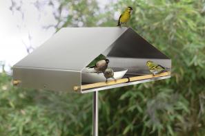 Gefertigt aus gebürstetem Edelstahl ist diese Futterstelle unverwüstlich.
