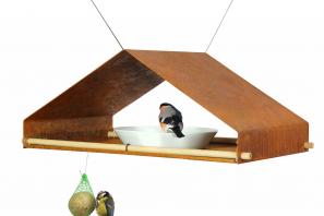 Unser Vogelhaus VHT-13, gefertigt aus Cortenstahl, ist zum Aufhängen an Bäumen und Ästen gedacht.