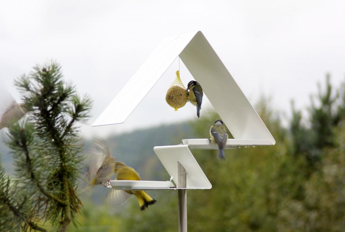 Manche assoziieren mit diesem Vogelimbiss zwar eher die Silhouette eines Hauses. (Passt aber letztendlich auch zum Thema: vogelHAUS...)