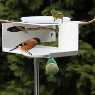 Moderne, zeitlose Architektur prägt diese Vogeltränke und Futterstelle in einem, mit Funktionalität im Detail und ausgewogenen Proportionen.